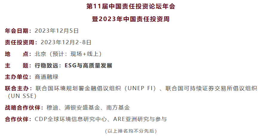 火热报名|第11届中国责任投资论坛年会暨2023年中国责任投资周